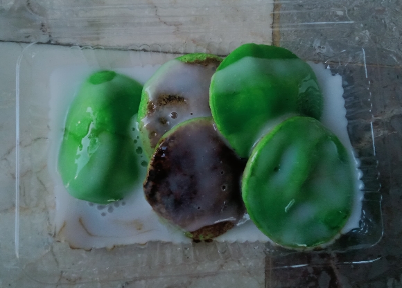 Serabi Gupak yang sudah disiram kuah santan dan gula merah.-Burhannudin.-radarindramayu.id
